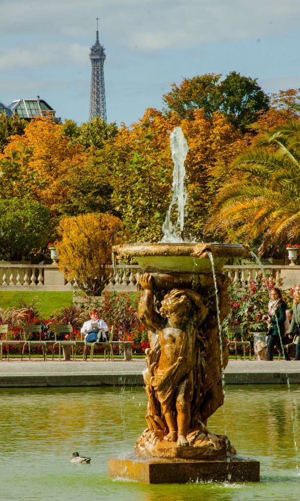 View of Eiffel Tower from Luxembourg Gardens, Paris, France