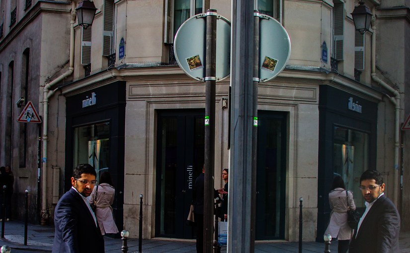 This photo is a reflection in a store window, captured by holding the camera touching and almost parallel to the glass of the window. The photo was taken in Paris, France, in October, 2015. Specs are: