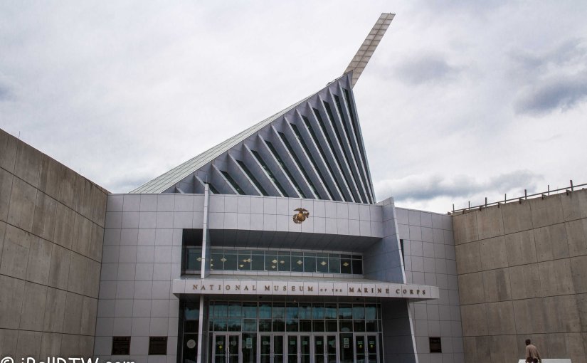 Yesterday we visited the National Museum of the Marine Corps adjacent to the Marine Corps Base in Quantico, Virginia. The museum is a 120,000 square foot structure that, from the outside, reminds viewers of the Iwo Jima Memorial in Arlington, Virginia, especially as seen from I-95. We have driven by this museum for many years without stopping, each time saying that we should visit it. Yesterday we made a special trip for just that.