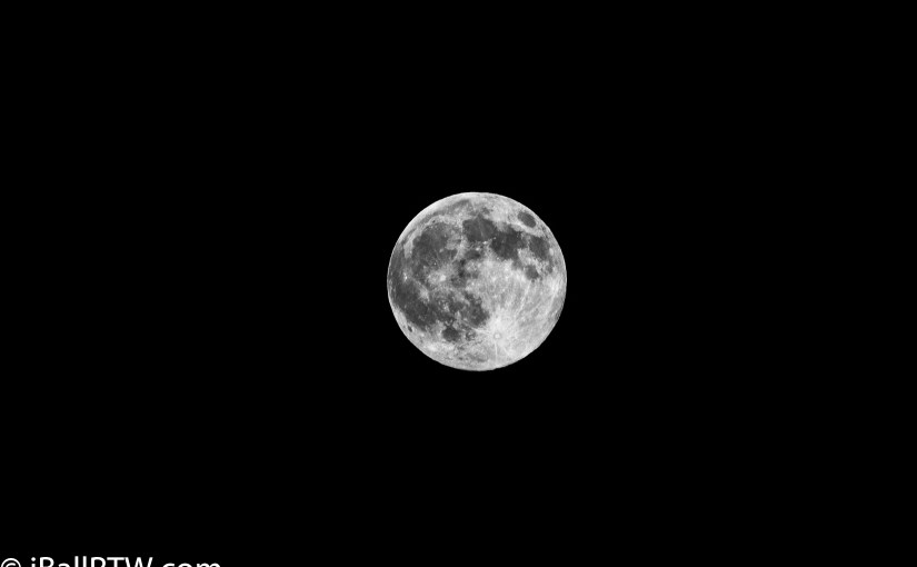 There was a full moon last evening. We wanted to experiment with exposure settings to learn what we needed to see the moon’s detail. Using a Canon 100D with a 250-mm lens at ISO 100, f/8.0, and 1/100 second we got the following result. The image was converted to black-and-white and post-processed in Silver Efx Pro.